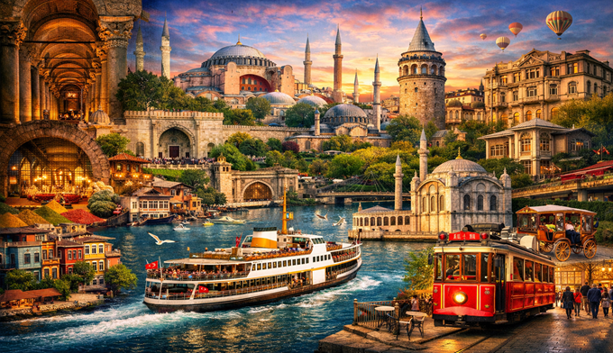 AYASOFYA - SULTANAHMET – YEREBATAN SARNICI – TOPKAPI SARAYI – GÜLHANE PARKI – MISIR ÇARŞISI – KAPALI ÇARŞI – SÜLEYMANİYE CAMİİ – BALAT – FENER – PİERRE LOTİ TEPESİ - PERA PALACE HOTEL-İSTİKLAL-GALATA KULESİ-TAKSİM- BOĞAZ TURU- ORTAKÖY- BÜYÜK ADA