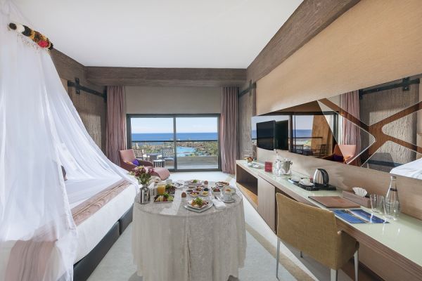 - Ultra Her Şey Dahil konseptte hizmet veren tesiste, zengin açık büfelerin kurulduğu bir restoranın yanı sıra farklı konseptlerde hizmet veren birçok bar bulunuyor. Şık ve modern tasarımları ile öne çıkan tesis odalarında minibardan uydu yayına kadar konaklama süresince ihtiyaç duyabileceğiniz pek çok olanak mevcut.